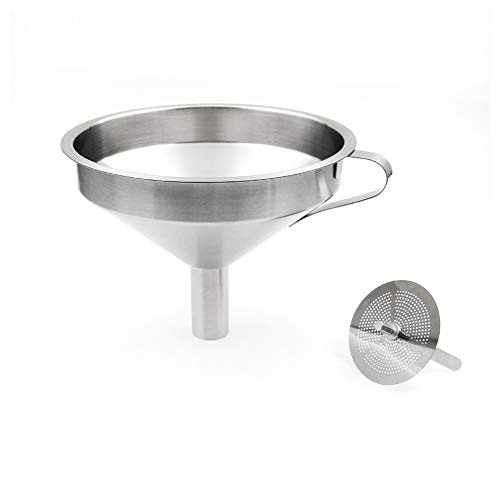 Product title norpro stainless steel funnel with strainer. 4.7 out of 5 stars. Vorpower premium stainless steel funnel, 5 inch food grade kitchen funnels with 200 mesh food filter strainer, metal funnel for filling bottles, food funnel for oils, juice, wine, coffee, milk. 5 out of 5 stars, based on 3 reviews 3 ratings current price $9.99 $ 9. 3 out of 5 stars, based on 1 reviews 1 ratings.