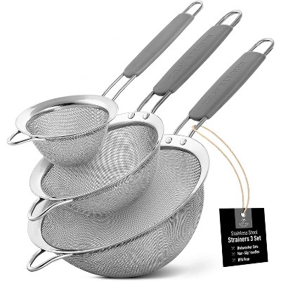 Available in 3 different sizes, this strainer conveniently fits over most pots.